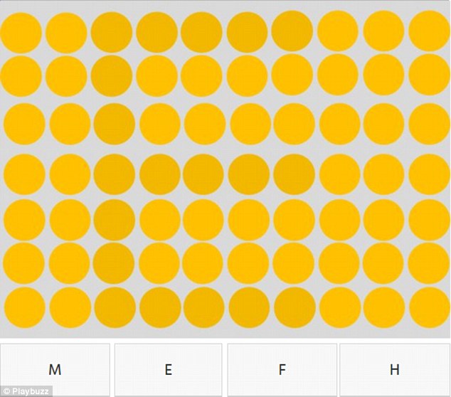 يختبي حرف Q بين النقاط الصفراء بلون مختلف قليلاً عنهم .